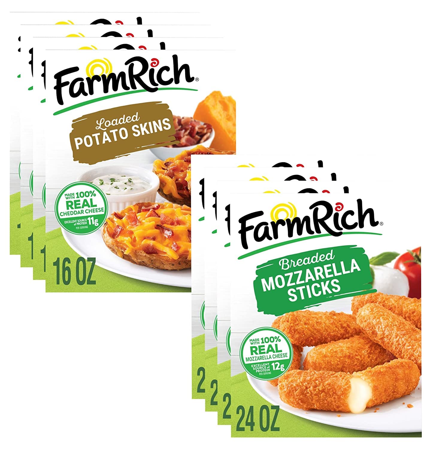 These delicious mozzarella sticks can be fried or baked in minutes for quick prep. Pair them with various dips and sauces, or with other Farm Rich products for the ultimate party spread. Our delicious loaded potato skins are ready in minutes so you can spend your time on more important things. Pair them with various dips and dressings, or with other Farm Rich products for the ultimate party spread. We know time is precious, and the last thing you want to do is spend all of your time in the kitchen. Farm Rich just wants to make snacking easy, simple, and delicious. We’re not fans of anyone telling you what, when, where, how, or why to snack. We really do believe only you should do that. So, it’s simple. If you wanna grab a snack, grab a snack. Whatever your snacking needs, and whenever you need them, you can count on Farm Rich. Please note that our warehouse packs everything as tightly as possible to ensure the item(s) remains frozen/refrigerated during transit and the coolant surrounds the item(s). As dry ice dissipates and gel packs thaw, this will create pockets of space in the package whereby products can shift around.Upon receiving the delivery, please immediately place your items in your refrigerator or freezer. If you are away when your package arrives, please watch your email for delivery confirmation. Upon delivery, plan for someone to place them in a refrigerator or freezer as soon as possible.